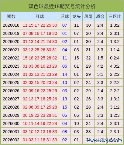上期奖号统计中,红球质合比为4:2、三区比为3:1:2、龙头号码为01,凤尾号码为33。